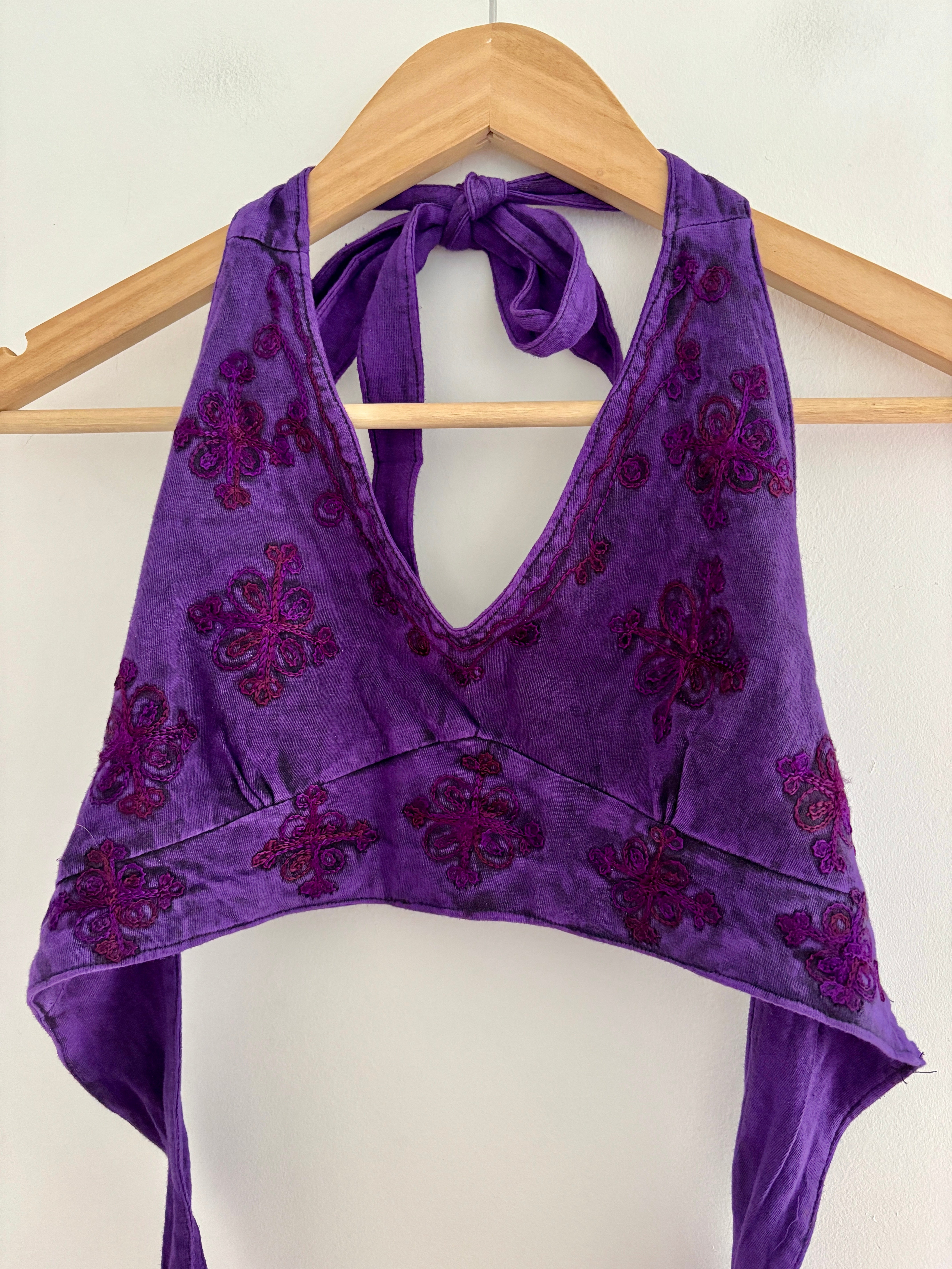 Purple Embroidered Halter Top