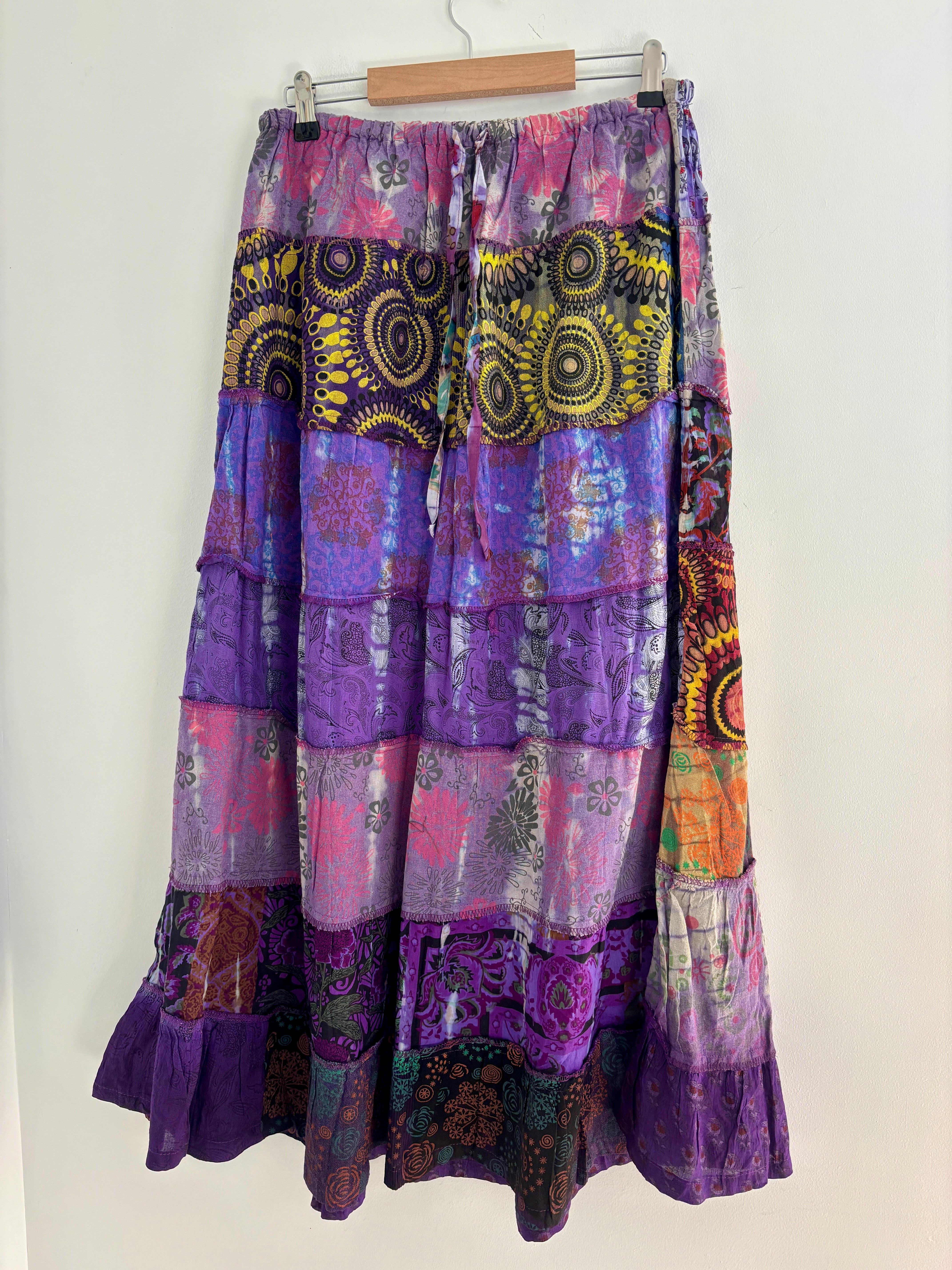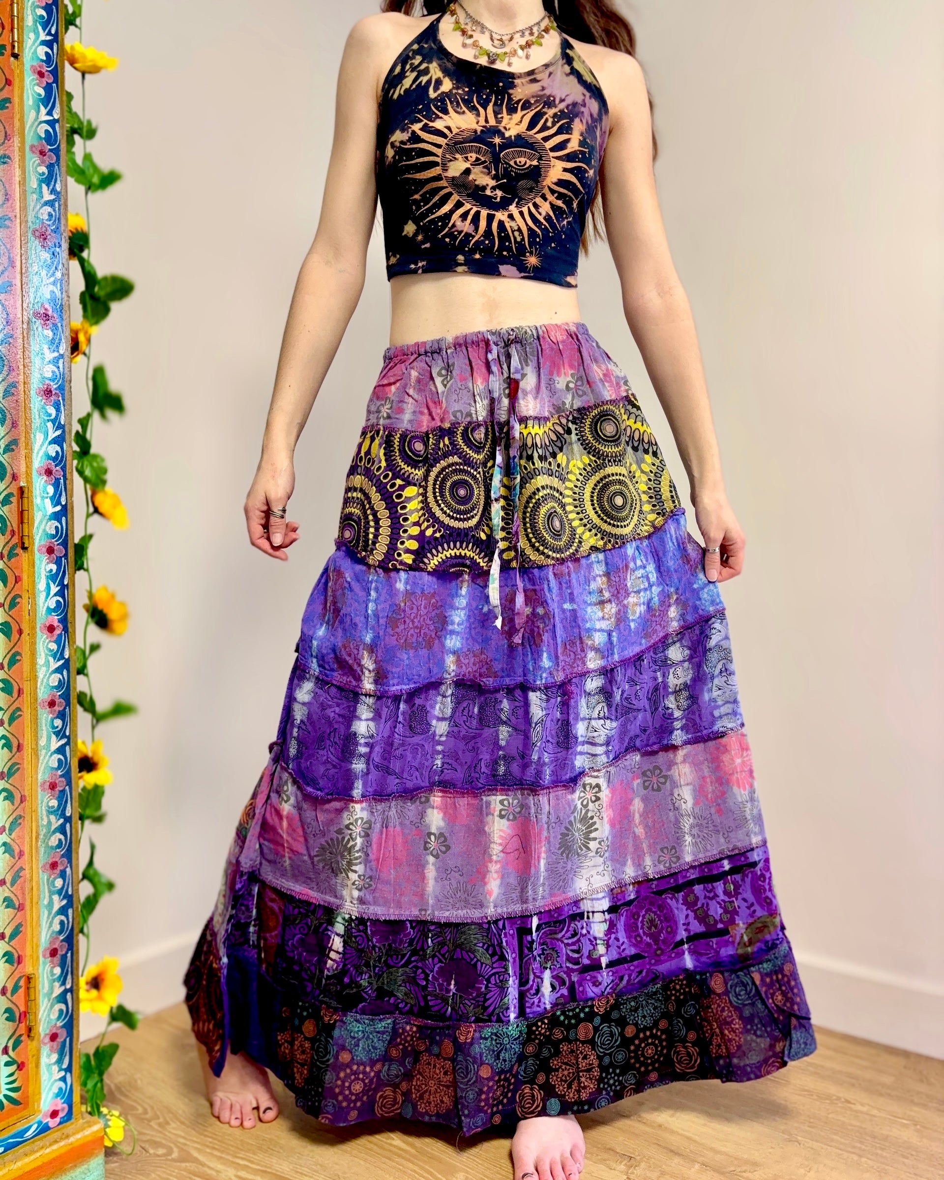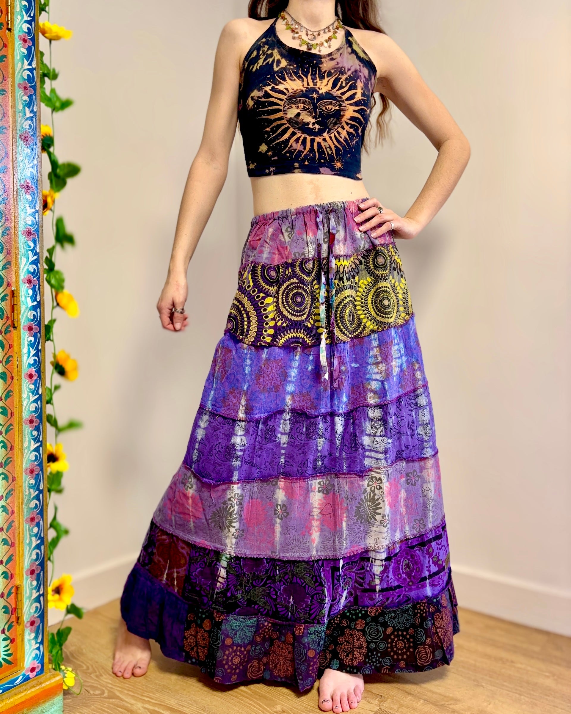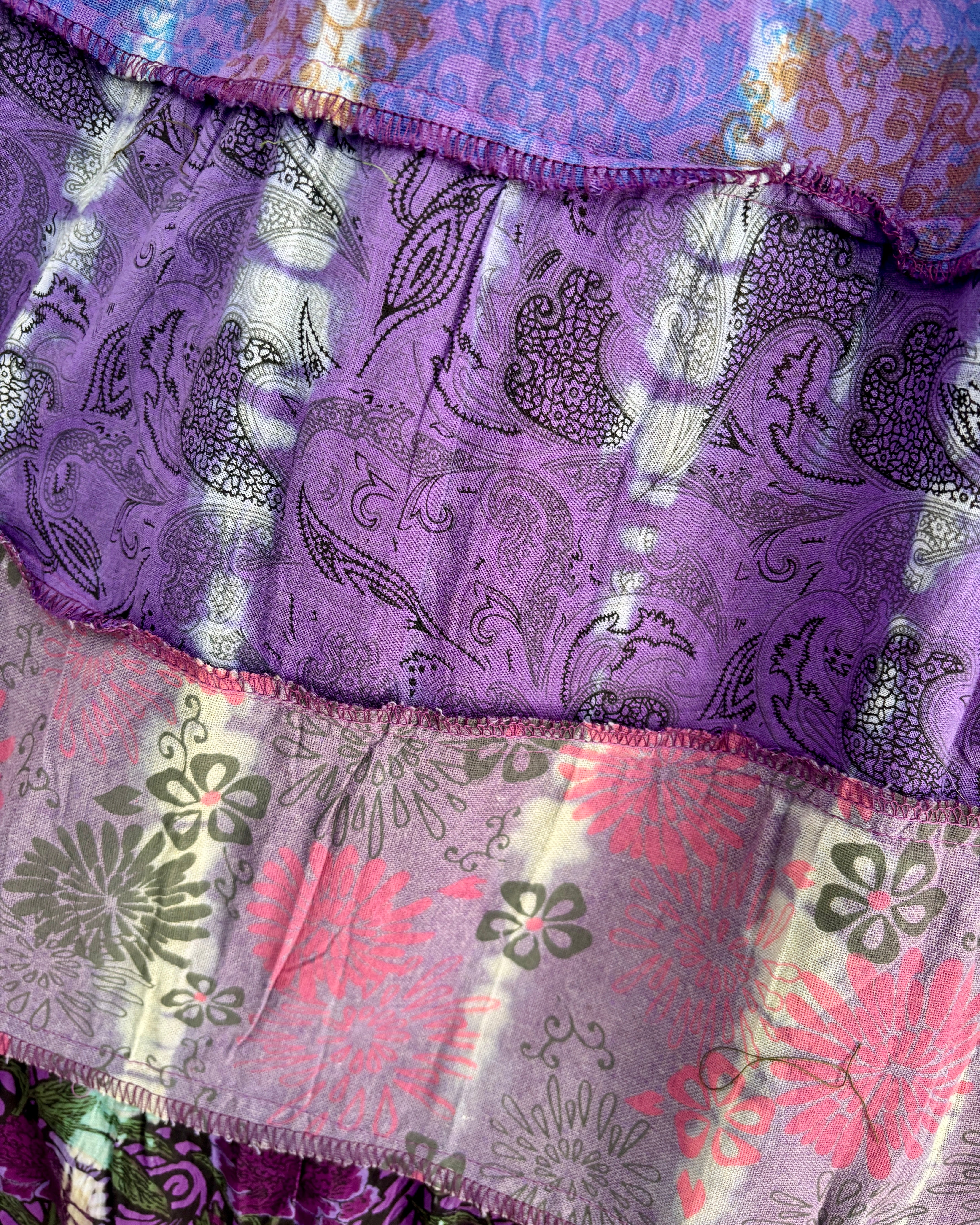 These beautiful skirts are made from patches of green earthy fabric made in a variety of designs and using different dye techniques.