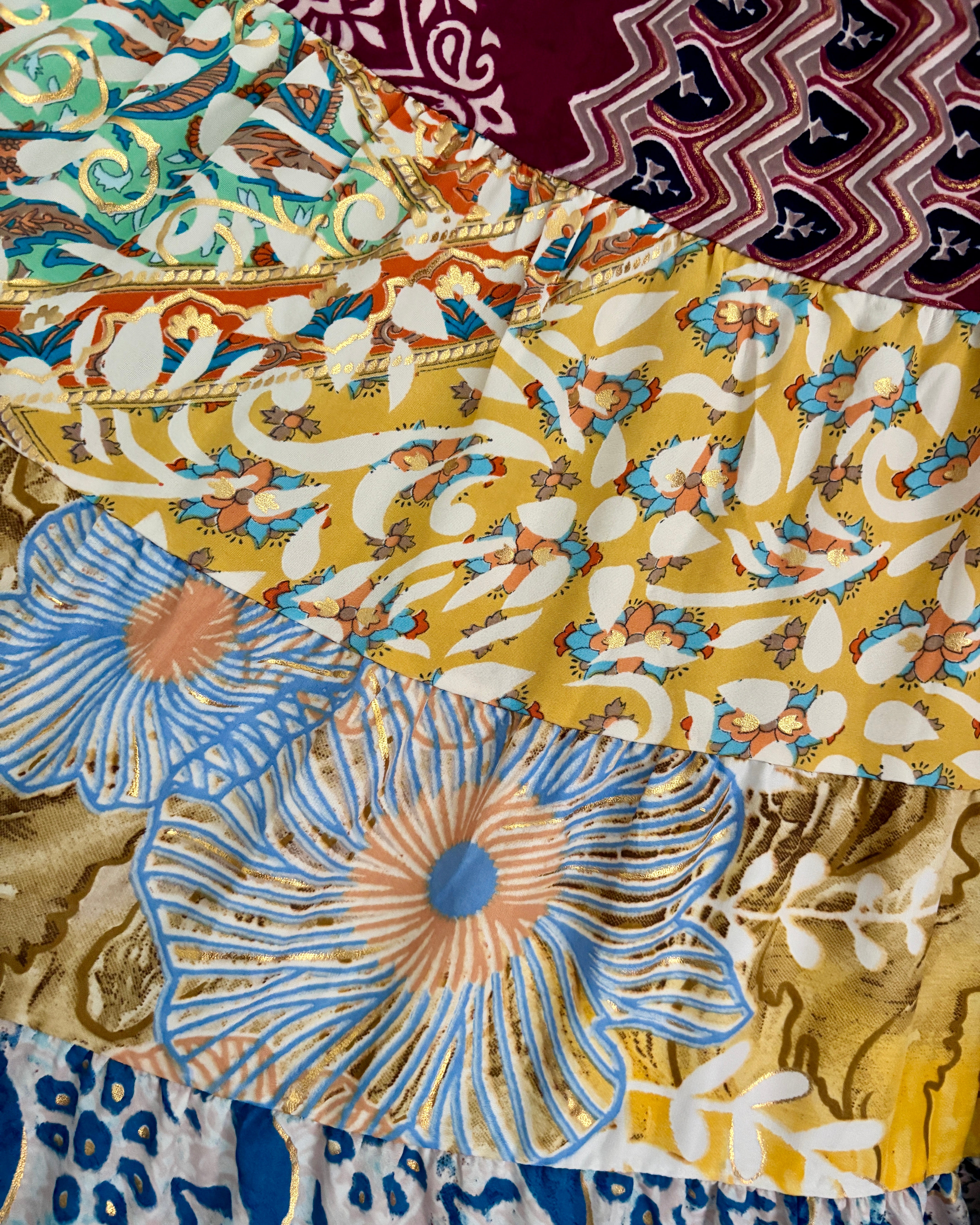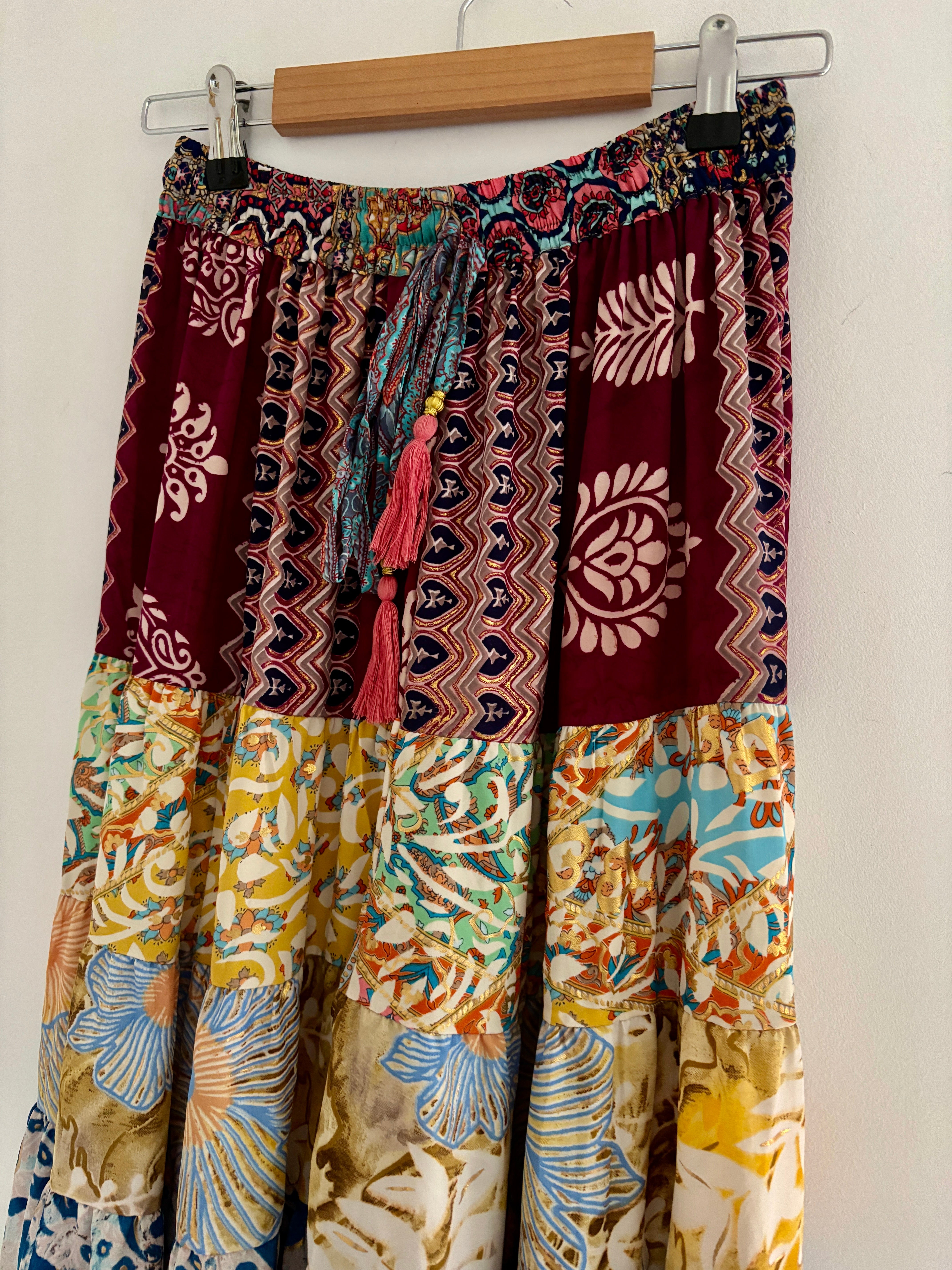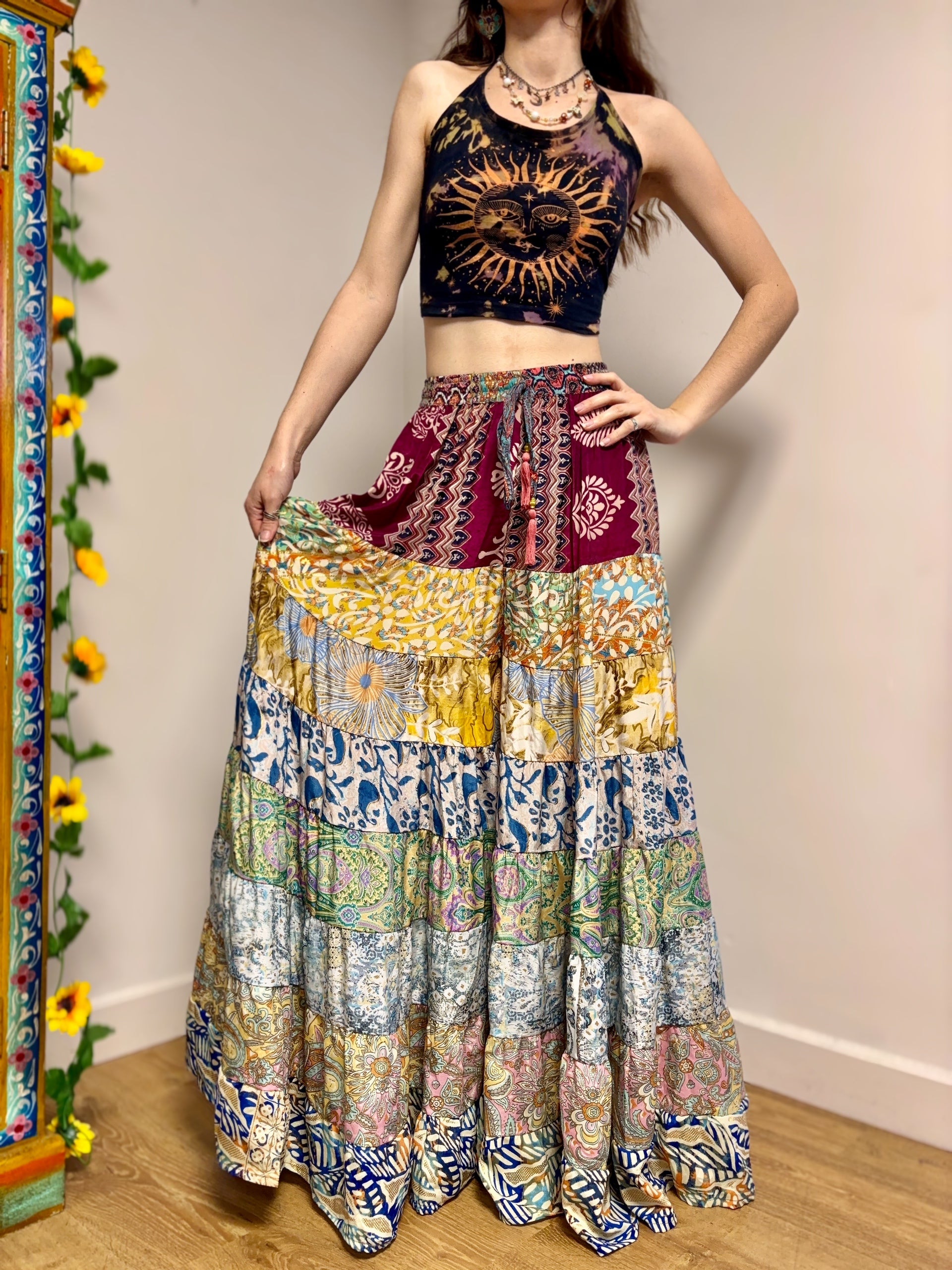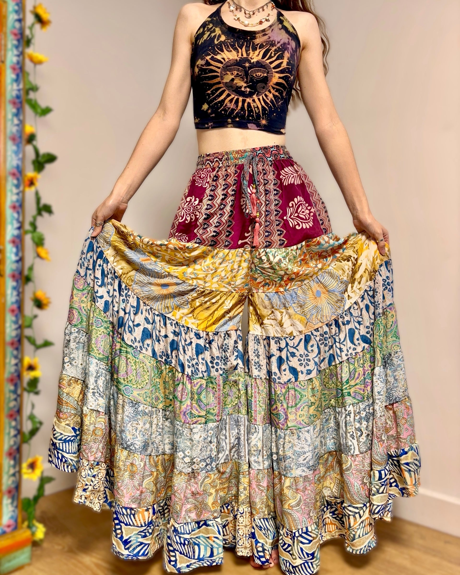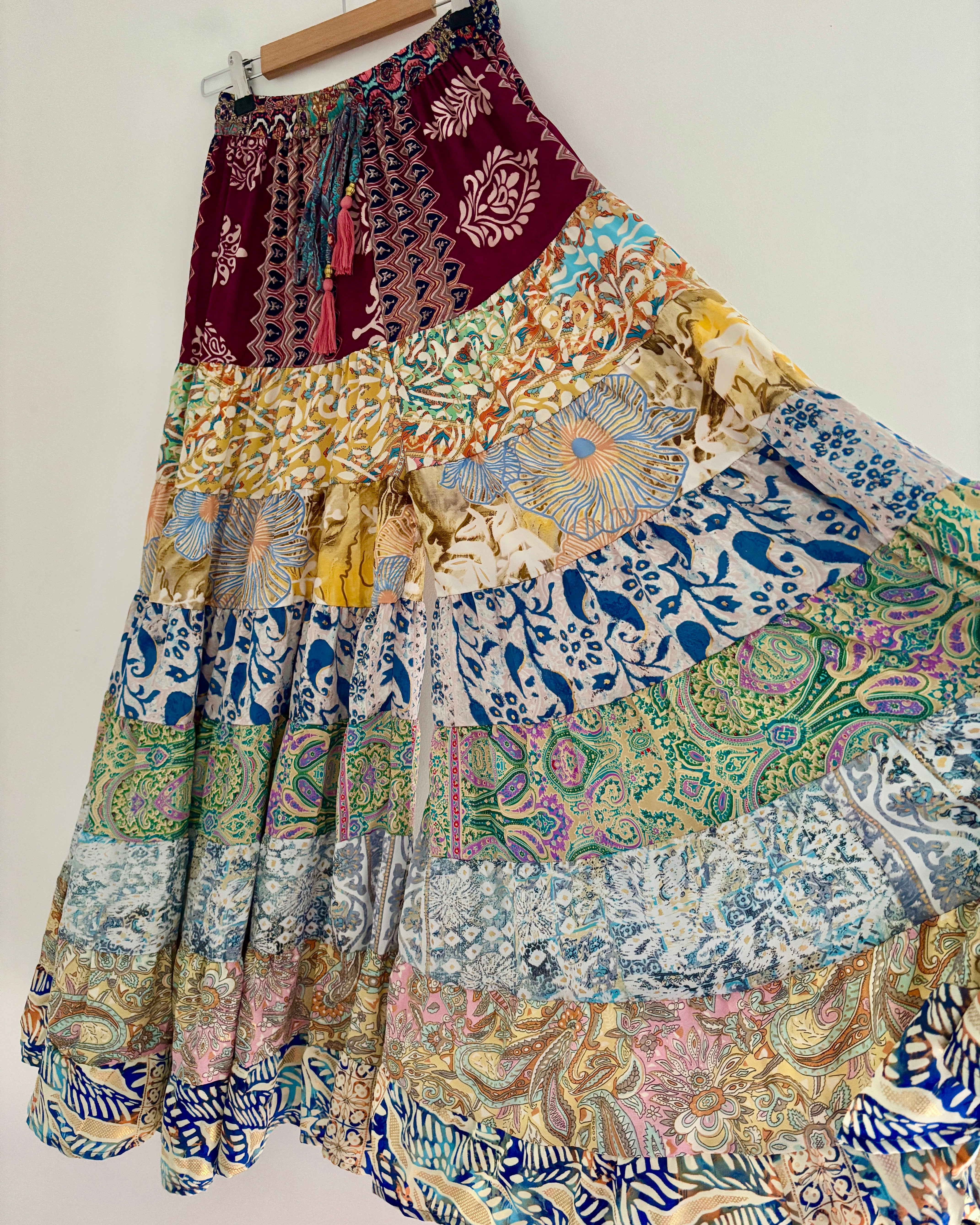 This piece is made from patches of beautiful recycled sari fabric that would otherwise have gone to waste. They are so magical and floaty, perfect for a festival hippie look!