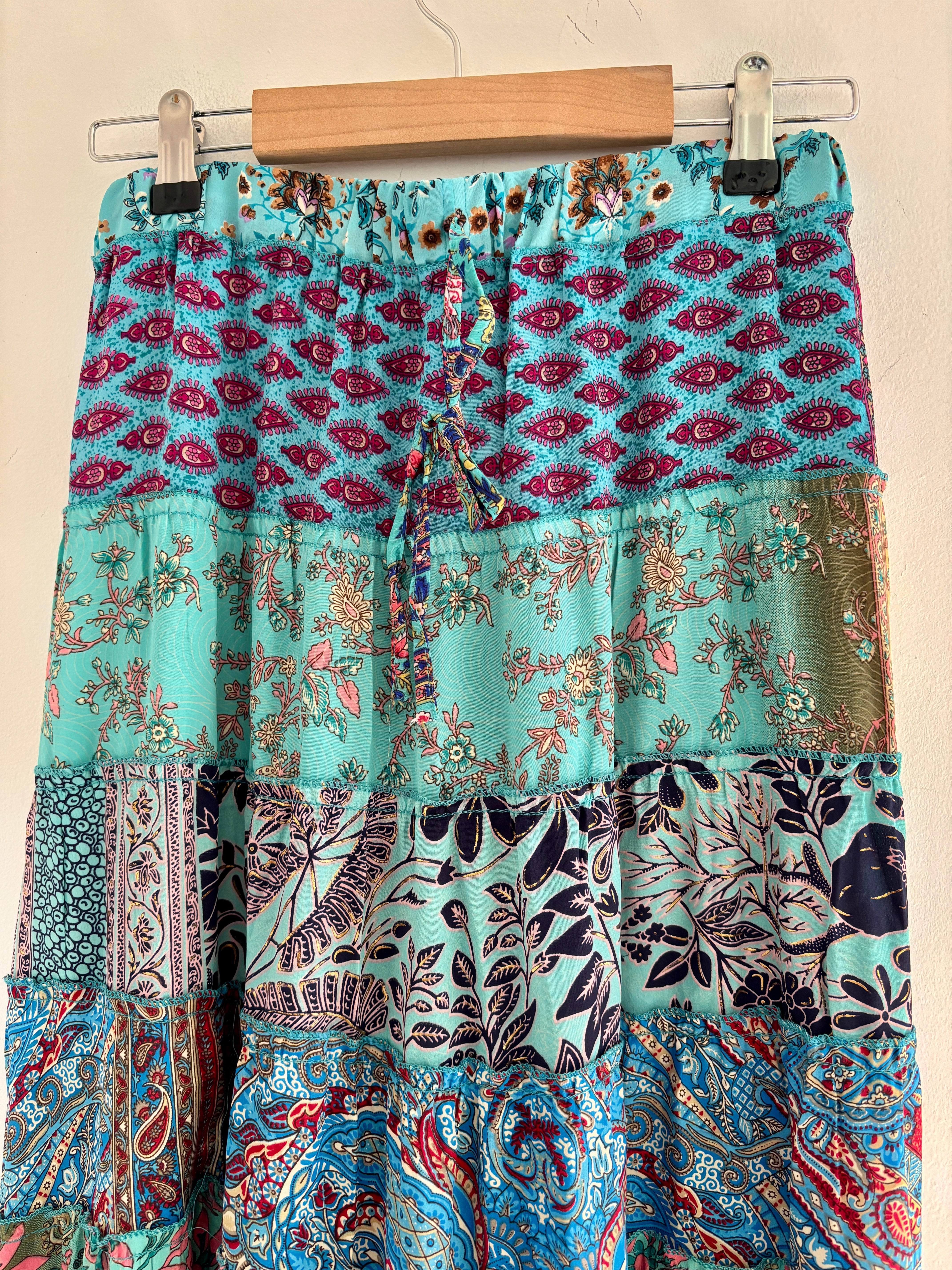 Blue Recycled Sari Patchwork Maxi Skirt