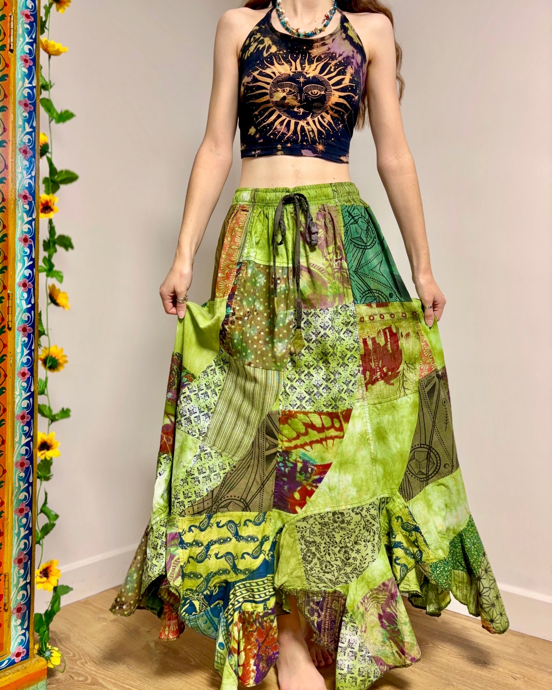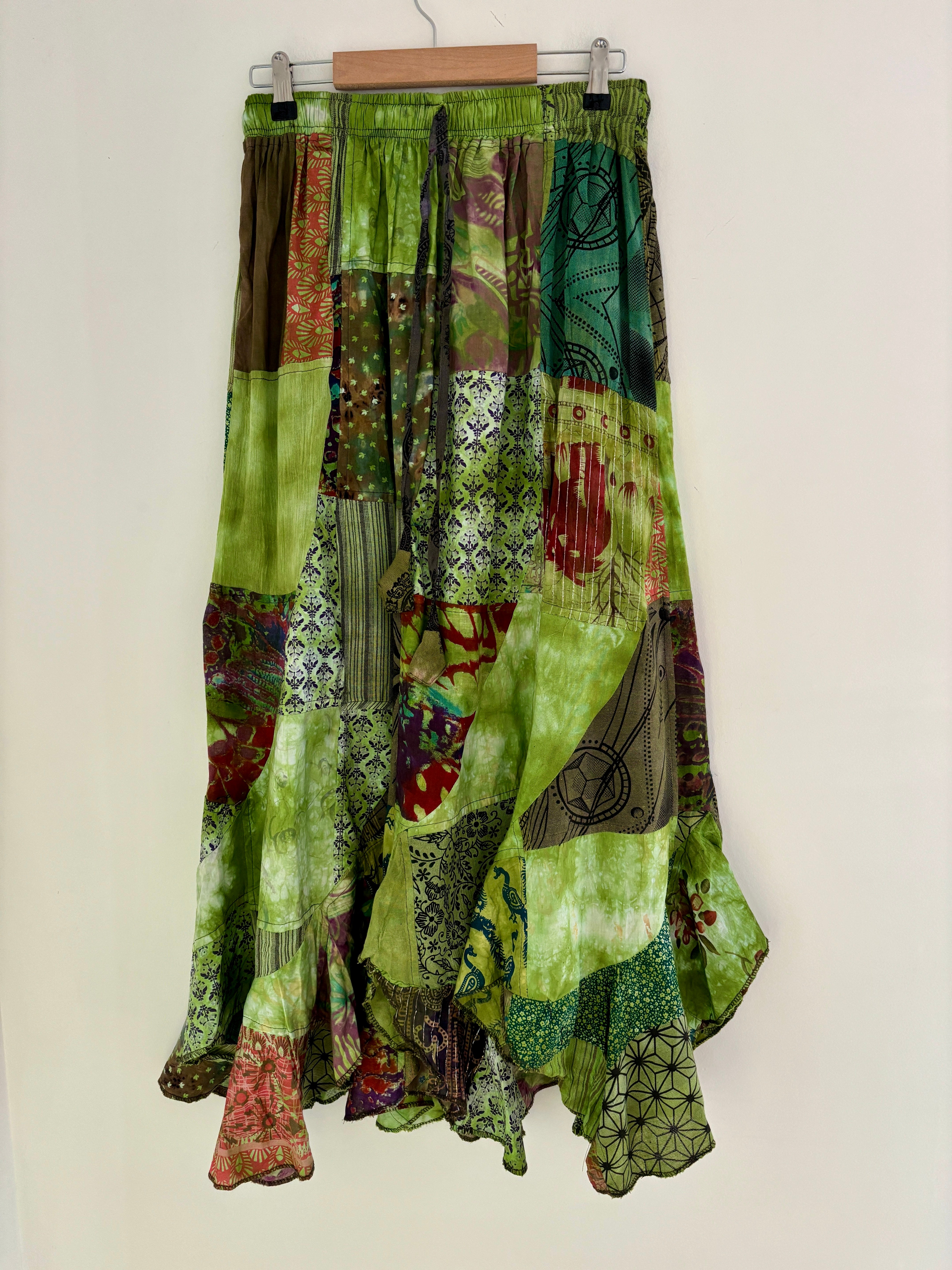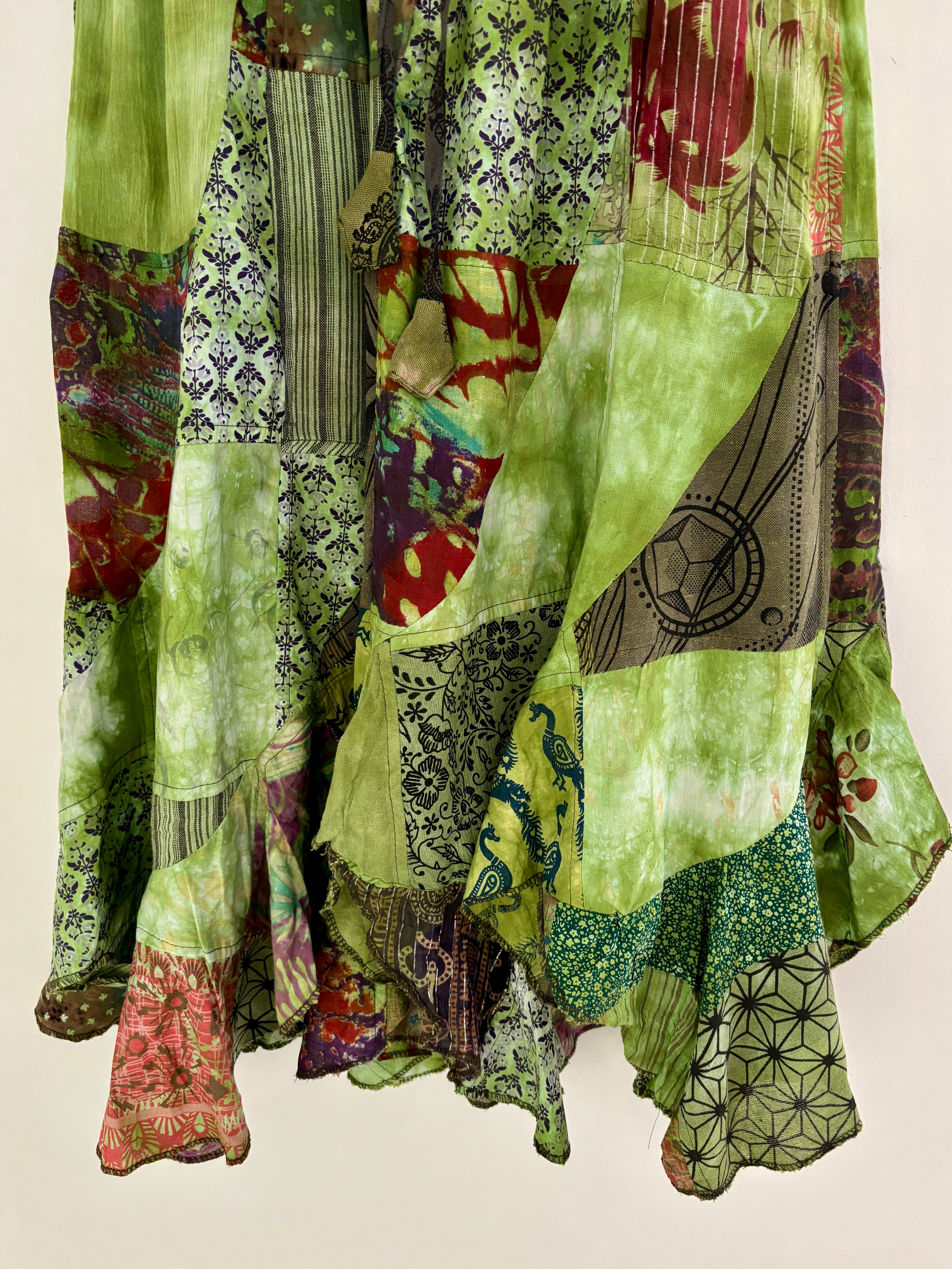 Green Patchwork Maxi Skirt