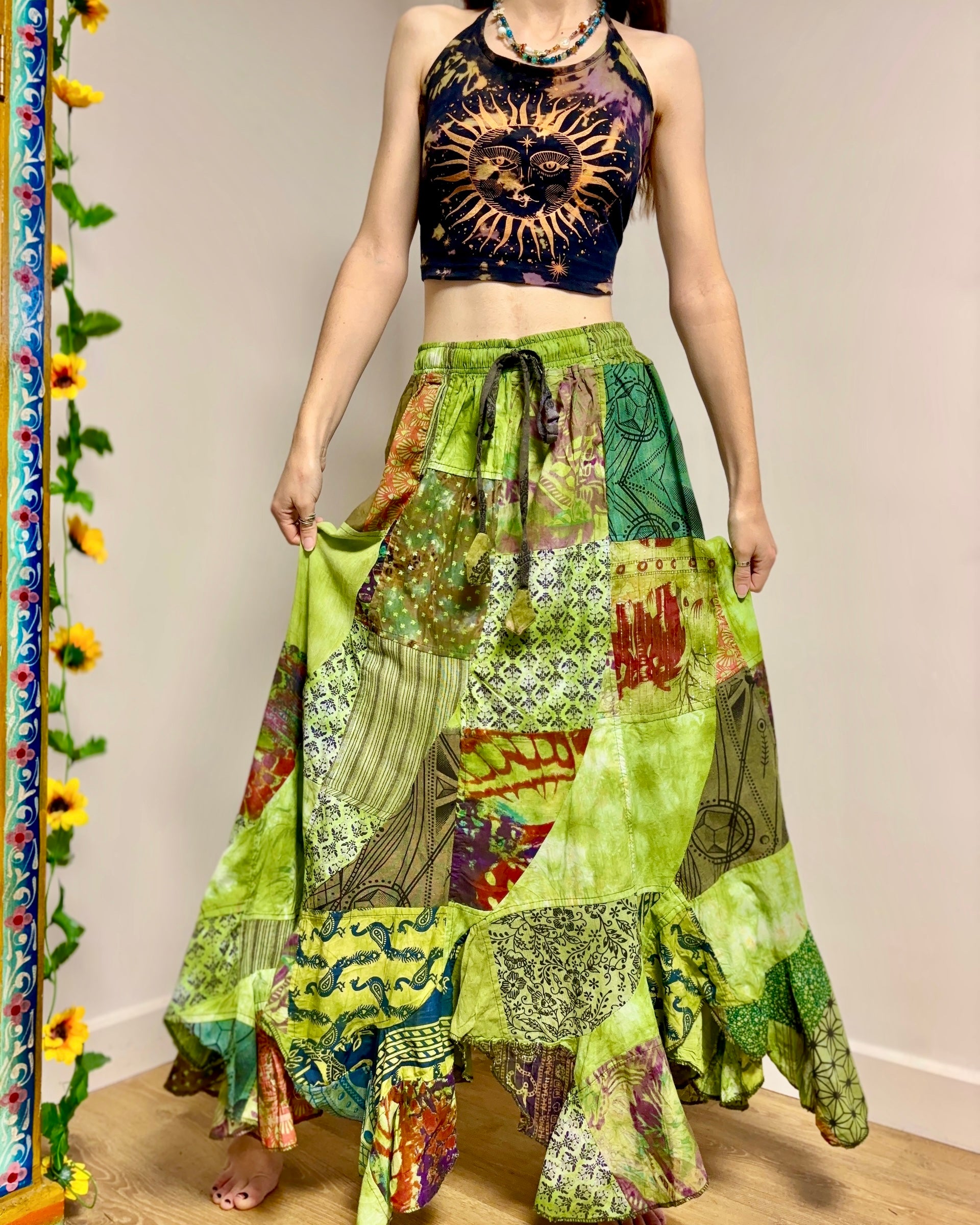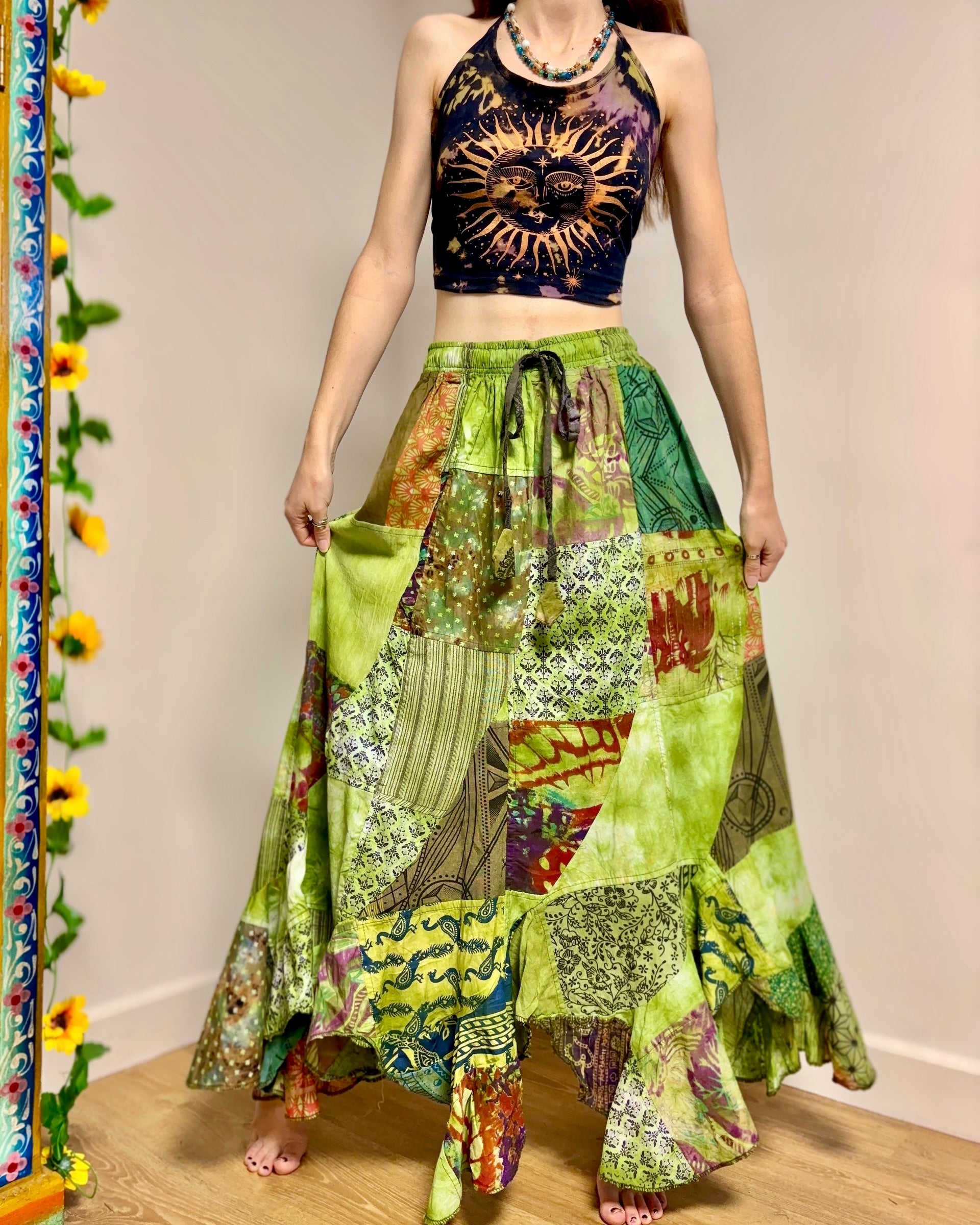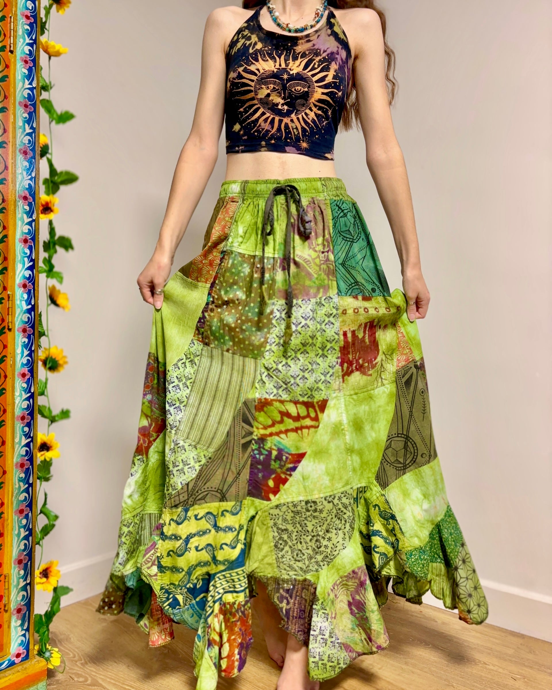 Green Patchwork Maxi Skirt