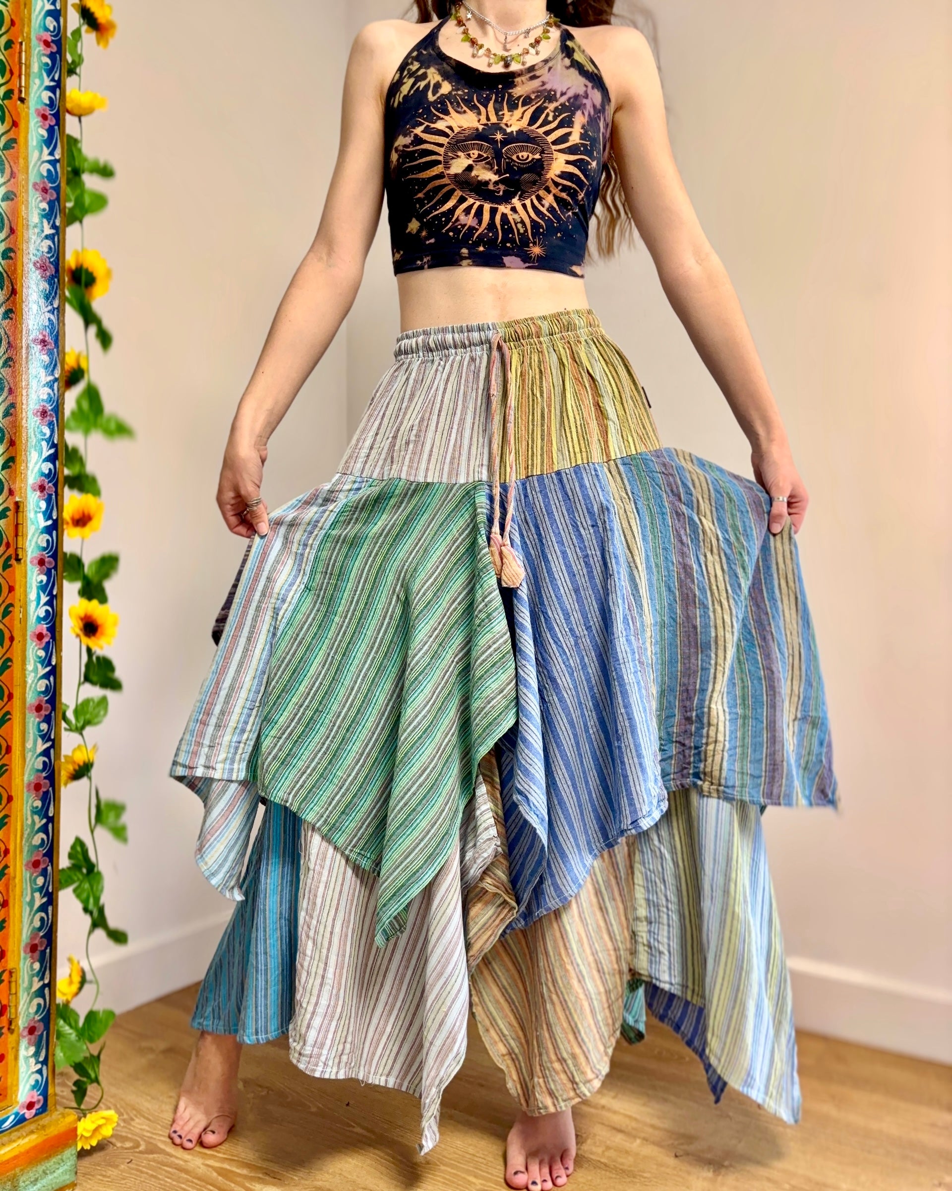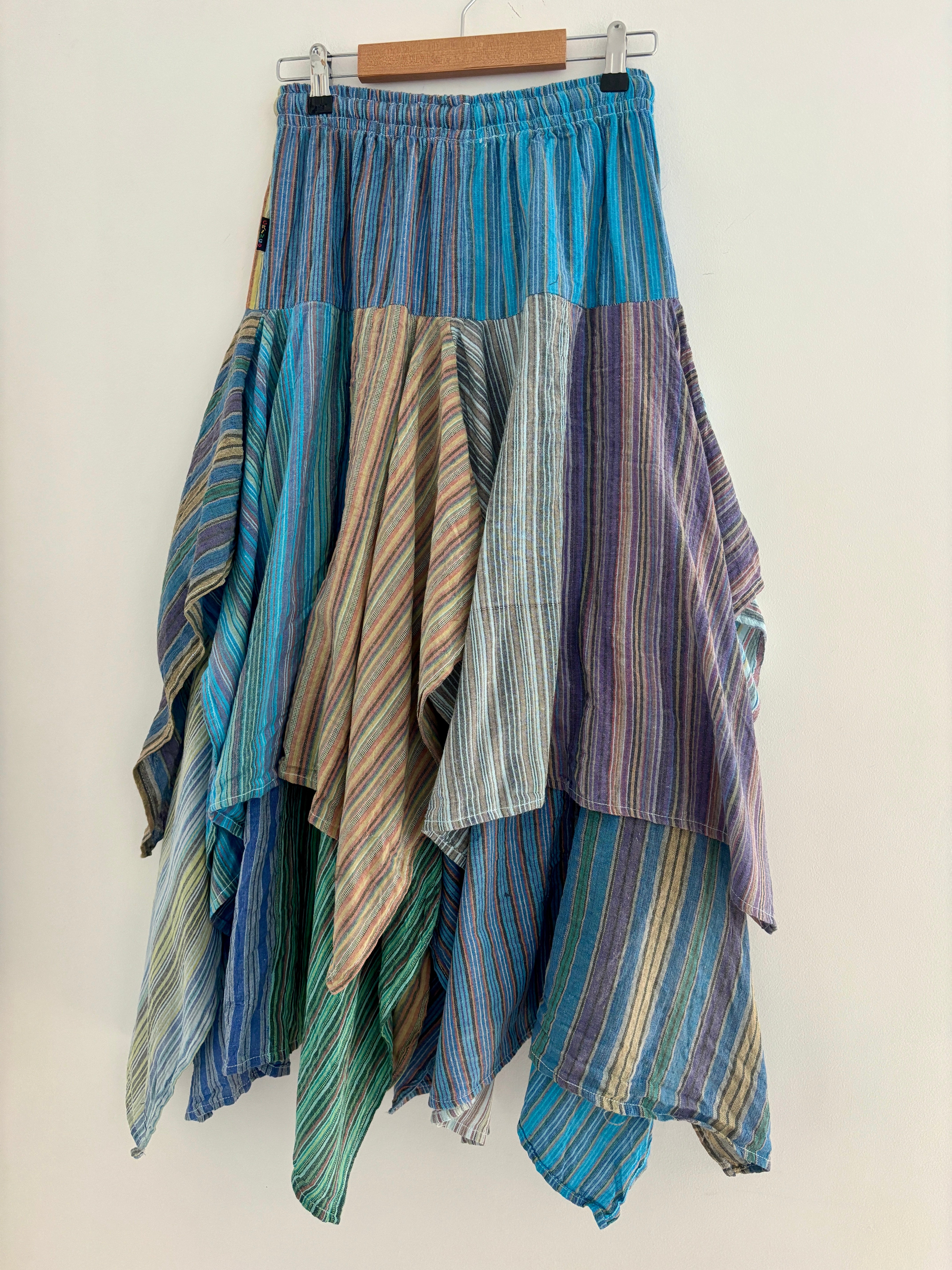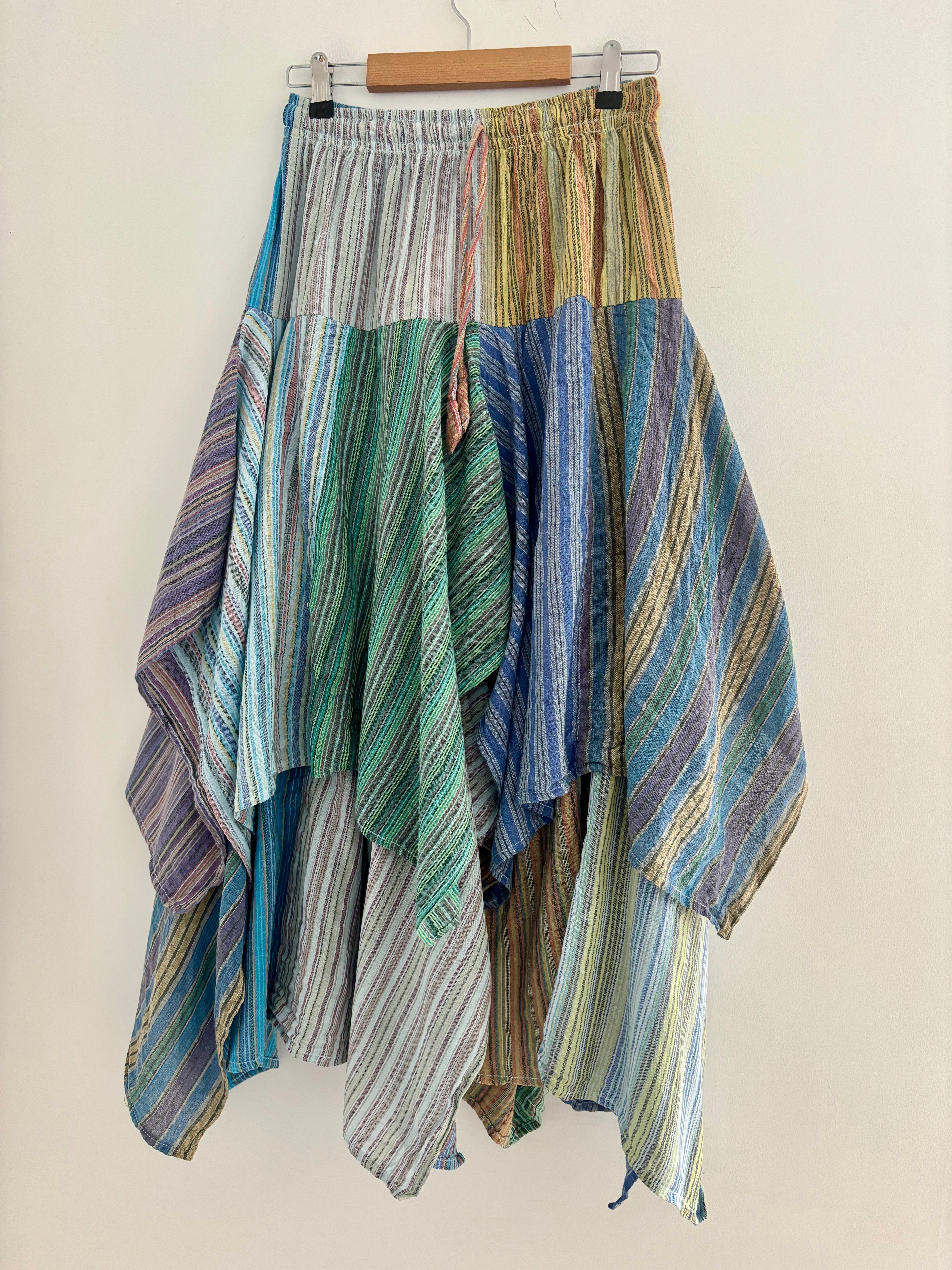 This beautiful skirt is made from patches of striped cotton with an asymmetrical bottom for a fairy look.