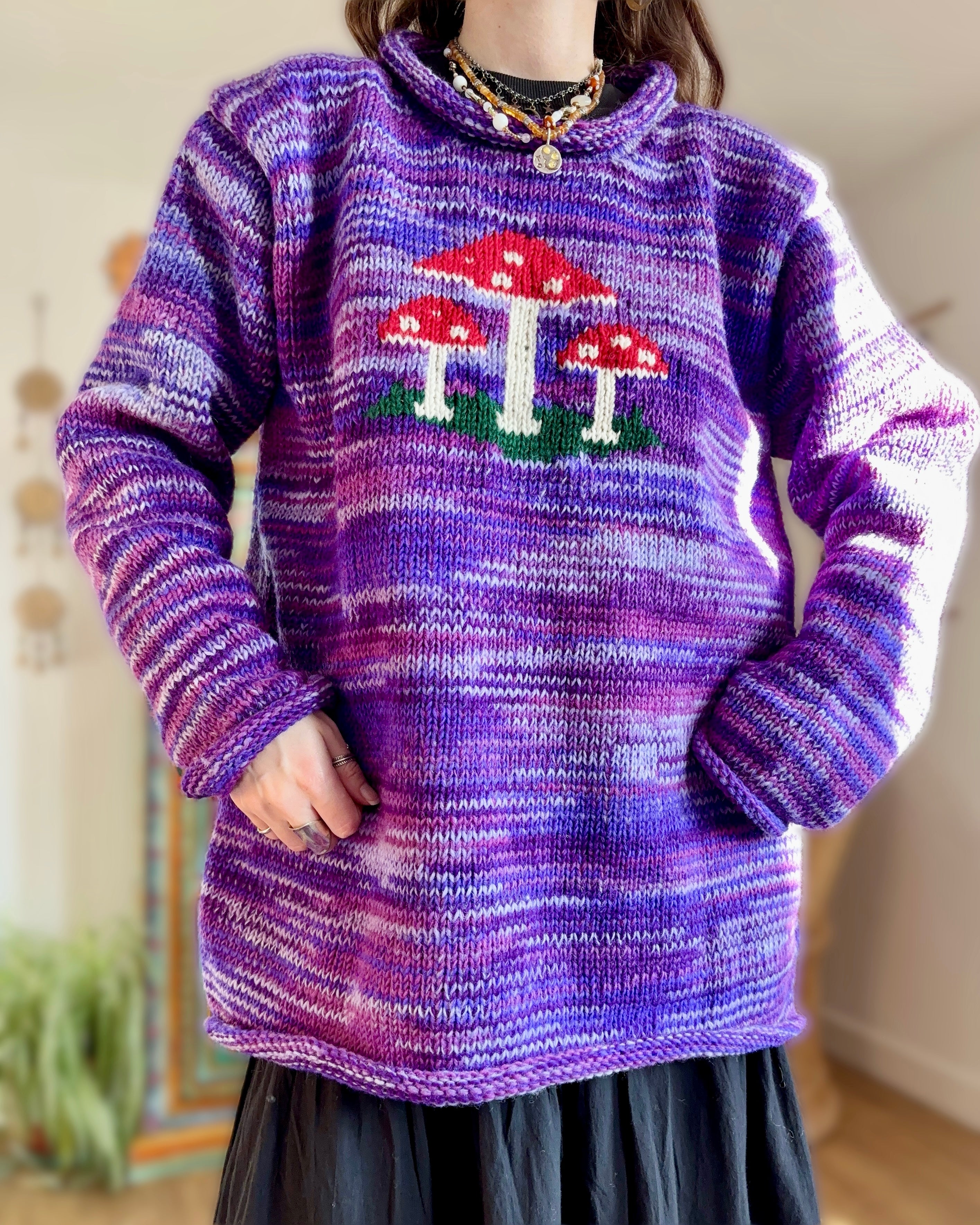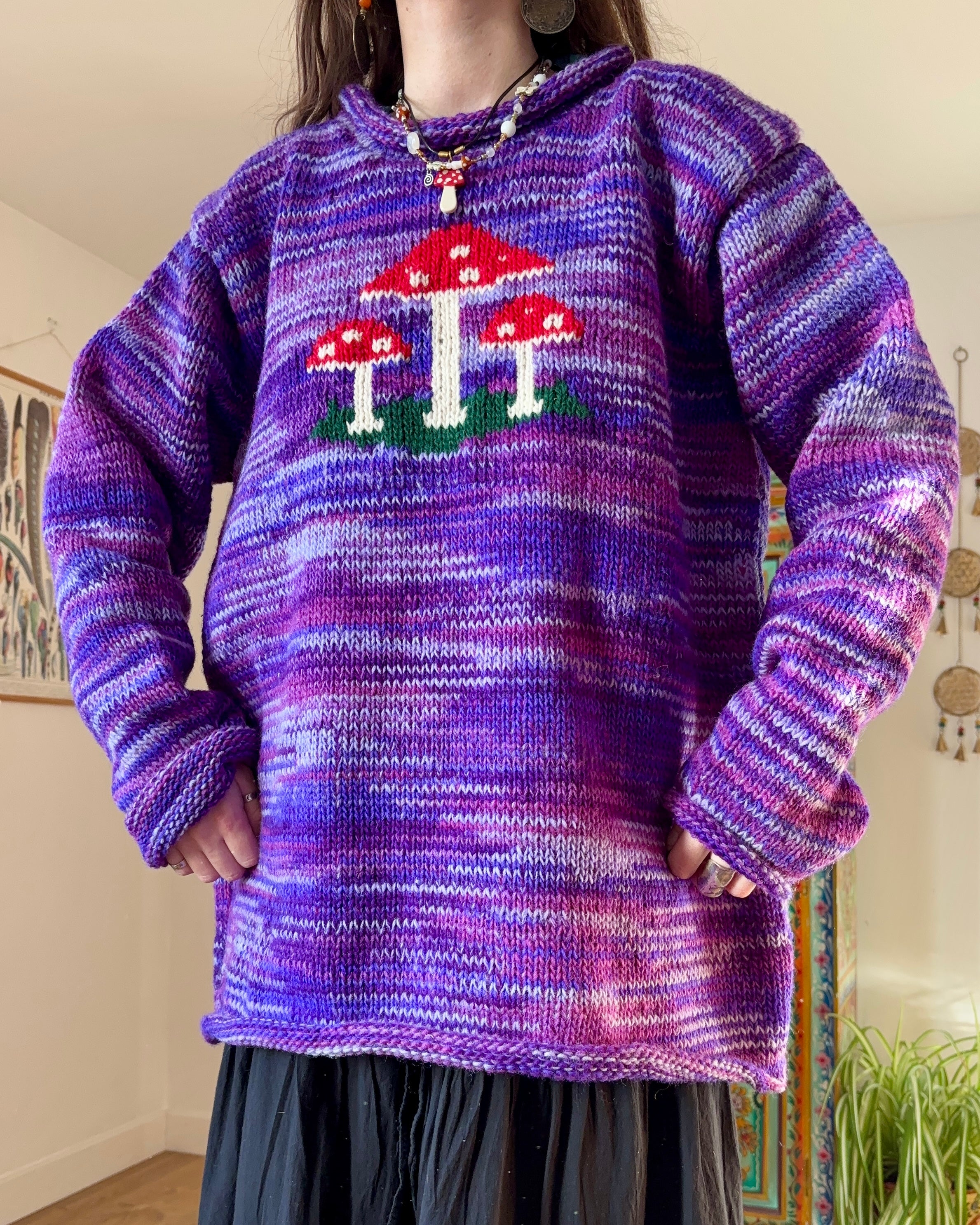 Purple Mushroom Knitted Wool Jumper