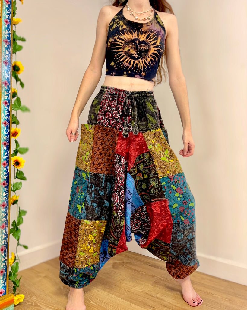 Welcome to our collection of hippie pants where you can shop the best in boho harem and patchwork pants. Our collection of hippie trousers is designed for those who love that free-spirited hippie vibe and want to carry it with them every day. Whether you're going for a relaxing day of yoga, or a casual outing, our boho pants are your perfect companion. Planning a festival outing or just want to lounge around at home? Our boho pants are a versatile choice.